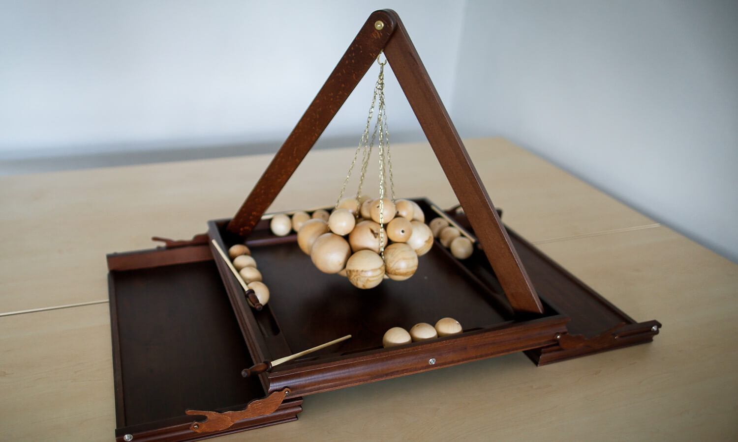 Žaidimą sudaro 12 didelių rutulių (kabinasi) ir 24 maži rutuliai ir 4 lazdelės.